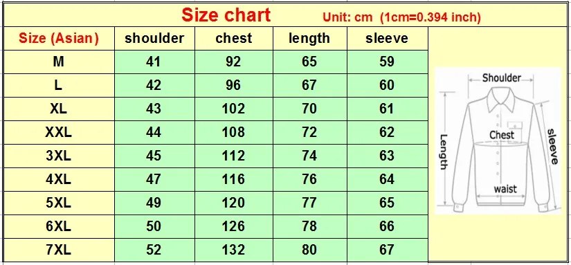 Обратите внимание: (1) Все мерки мерки одежды . (2) Если ваше самое подходящее платье имеет обхват груди 41 дюйм или 104 см, размер БОЛЬШОЙ будет вашим лучшим выбором. (3) Пожалуйста, НЕ сравнивайте нашу таблицу размеров с размерами вашего тела. (3) Длина рукава может варьироваться в зависимости от рисунка или стиля изделия. |