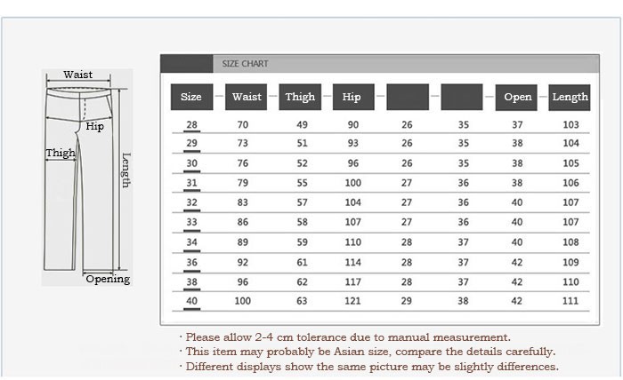 Соотношение размеров для мужских джинсов | ||||||||||||