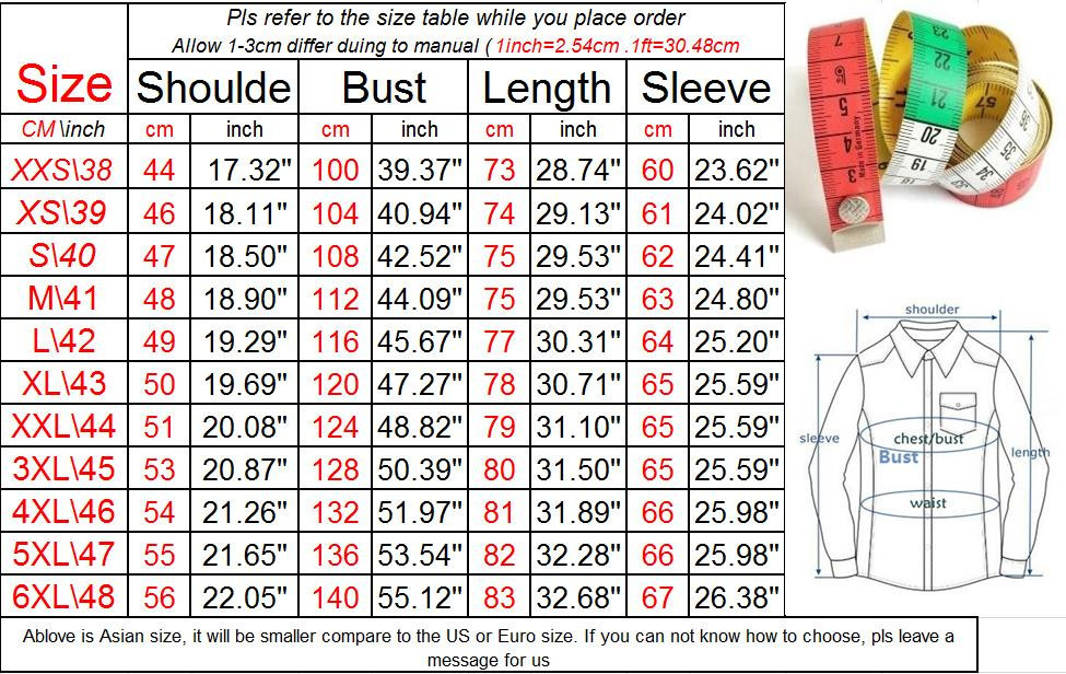 | 37 – 38/43 – 44/49 – 50 | S/ XL/ XXXXL/ XXXXXL | 42 – 44/54 – 56/66 – 68 |