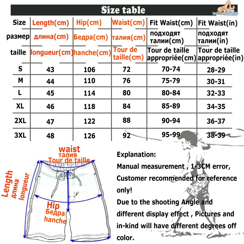 | Расхождения зарубежных производителей в вычислении размеров мужских шорт: |