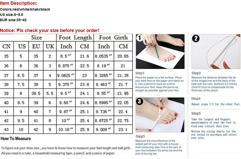 Выбор размера обуви на Алиэкспресс осуществляется по той размерной сетке, которая указана непосредственно на странице с товаром. Прежде всего, необходимо измерить длину стопы от начала пальцев и до пятки. Если вы не уверены, какой размер подобрать, то непременно обратитесь к продавцу до того, как размещать заказ.