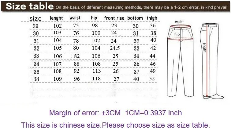 | W38 | 38/30 | 38/32 | 38/34 | 38/36 | 38/38 | 38/40 | 114-119 | 94-98 |
