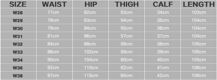 | W32 | 32/30 | 32/32 | 32/34 | 32/36 | 32/38 | 32/40 | 98-100 | 81-83 |