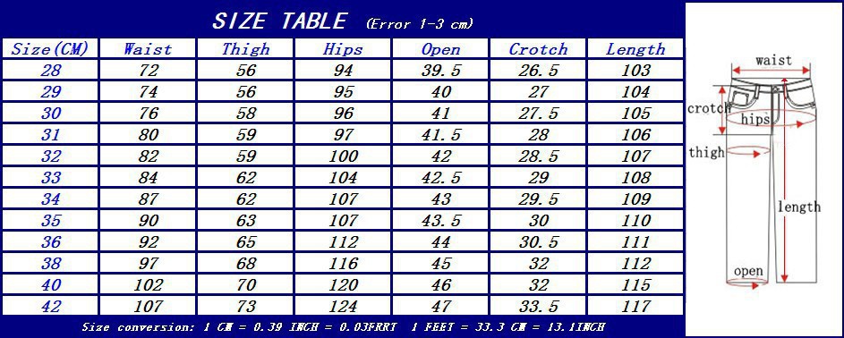 | W34 | 34/30 | 34/32 | 34/34 | 34/36 | 34/38 | 34/40 | 104-105 | 87-88 |