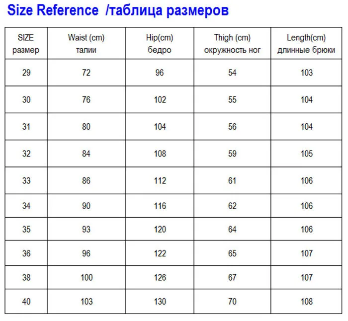 | Размер | Фактическая талия | Фактическая длина штанины |