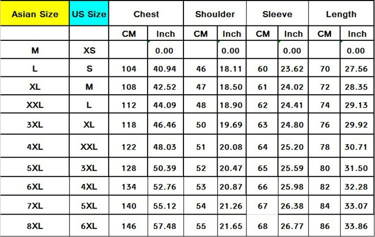 50-52 | 82-86 | 108-112 | XXL/3XL | 10-12 |