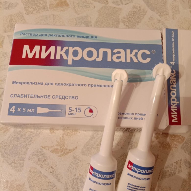 18, 19Вы можете легко использовать MICROLAX®, сидя на корточках или сидя в обычном положении на унитазе.Открутите заглушку с головки трубки и выдавите каплю раствора перед тем, как полностью ввести горлышко трубки в прямую кишку. Для детей младше 3 лет в прямую кишку следует вводить только половину длины насадки (как указано на насадке). Из-за тонкой насадки введение должно быть удобным. Затем вылейте все содержимое пробирки (5 мл) в прямую кишку и удерживайте пробирку сжатой, пока вы ее извлекаете. Теперь сожмите ягодицы, чтобы жидкость не вытекла, и выбросьте использованную трубку.Важно: дайте раствору не менее 5 минут до дефекации, чтобы он полностью подействовал. Обычно через 5-15 минут происходит легкое опорожнение прямой кишки.
